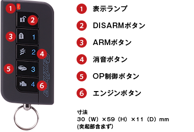 5ボタン特定小電力1mWリモコン。ご家族で1台の車を利用される場合に便利です。